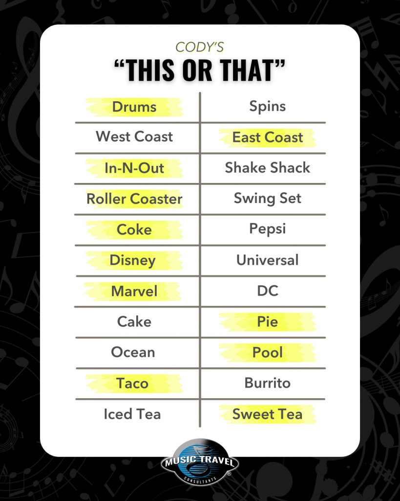 Cody Groves brings nearly 20 years of marching arts experience to his role as a tour director with Music Travel Consultants.