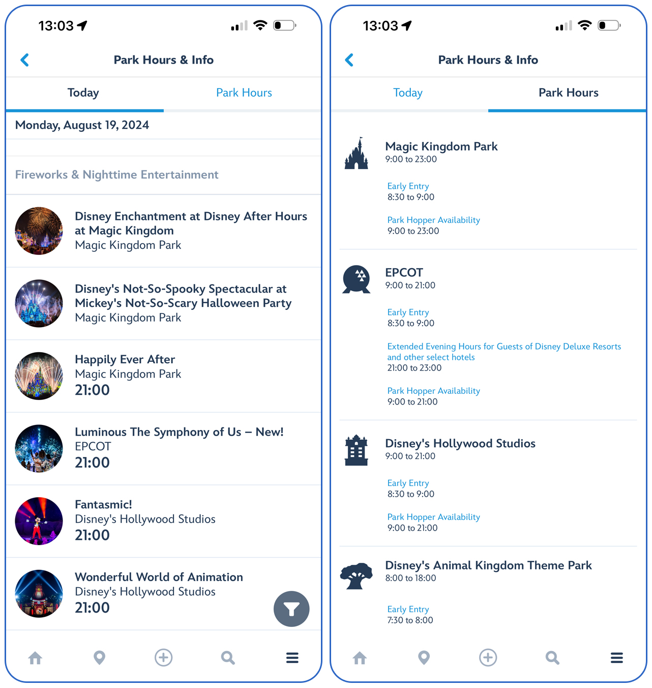 The MyDisneyExperience App also include other useful features: